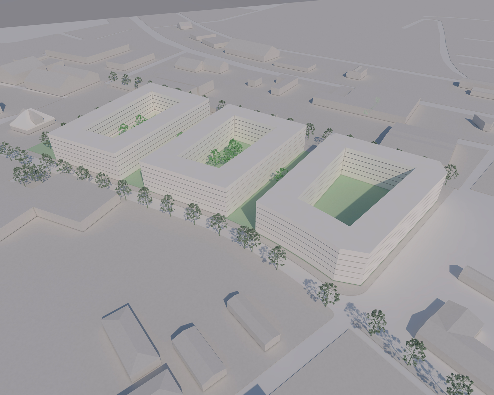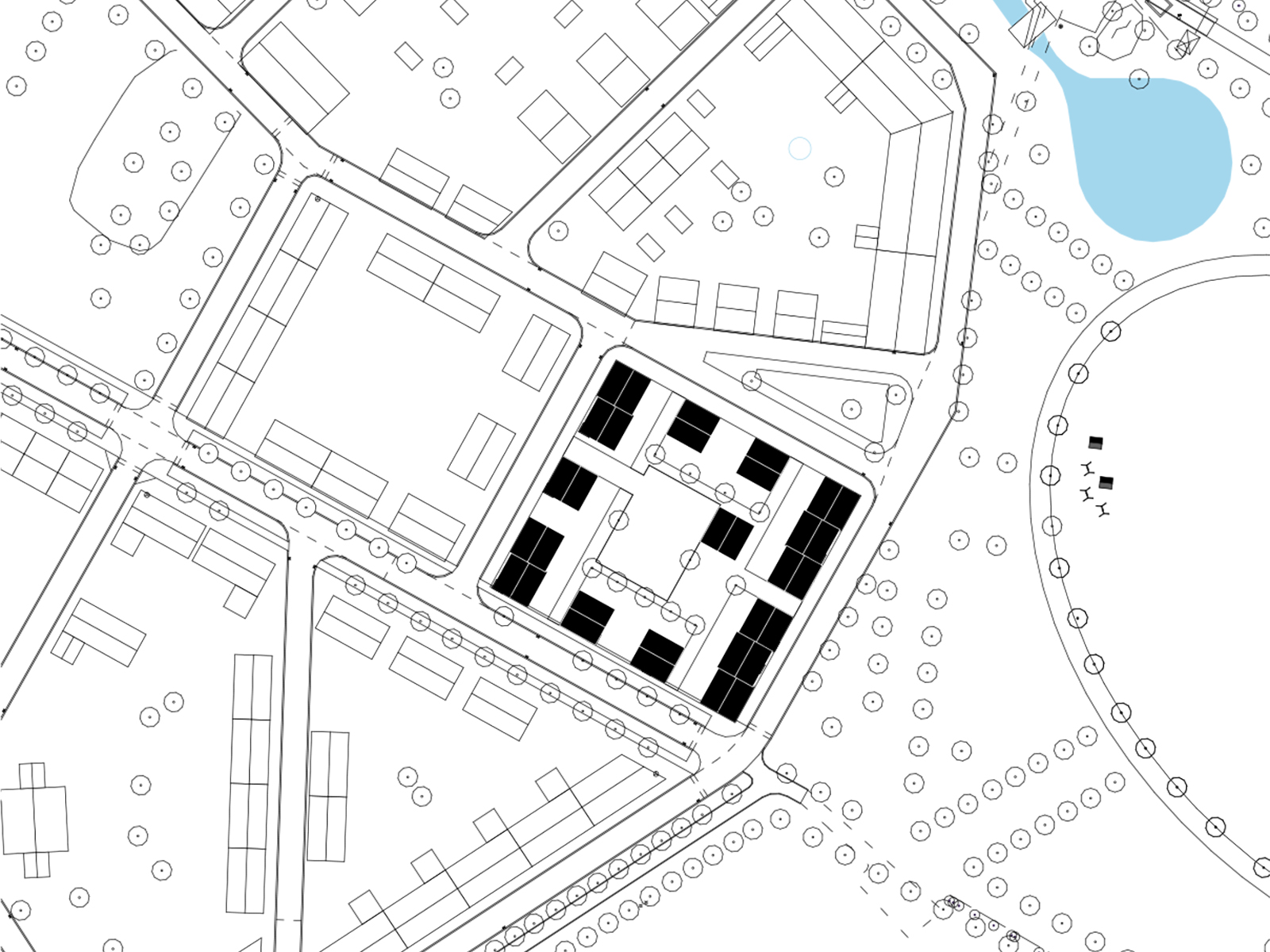 Genom att grupperas på olika sätt kan typhuset med sina enkla beståndsdelar skapa variation, flexibilitet och lekfullhet inom kvarteret.