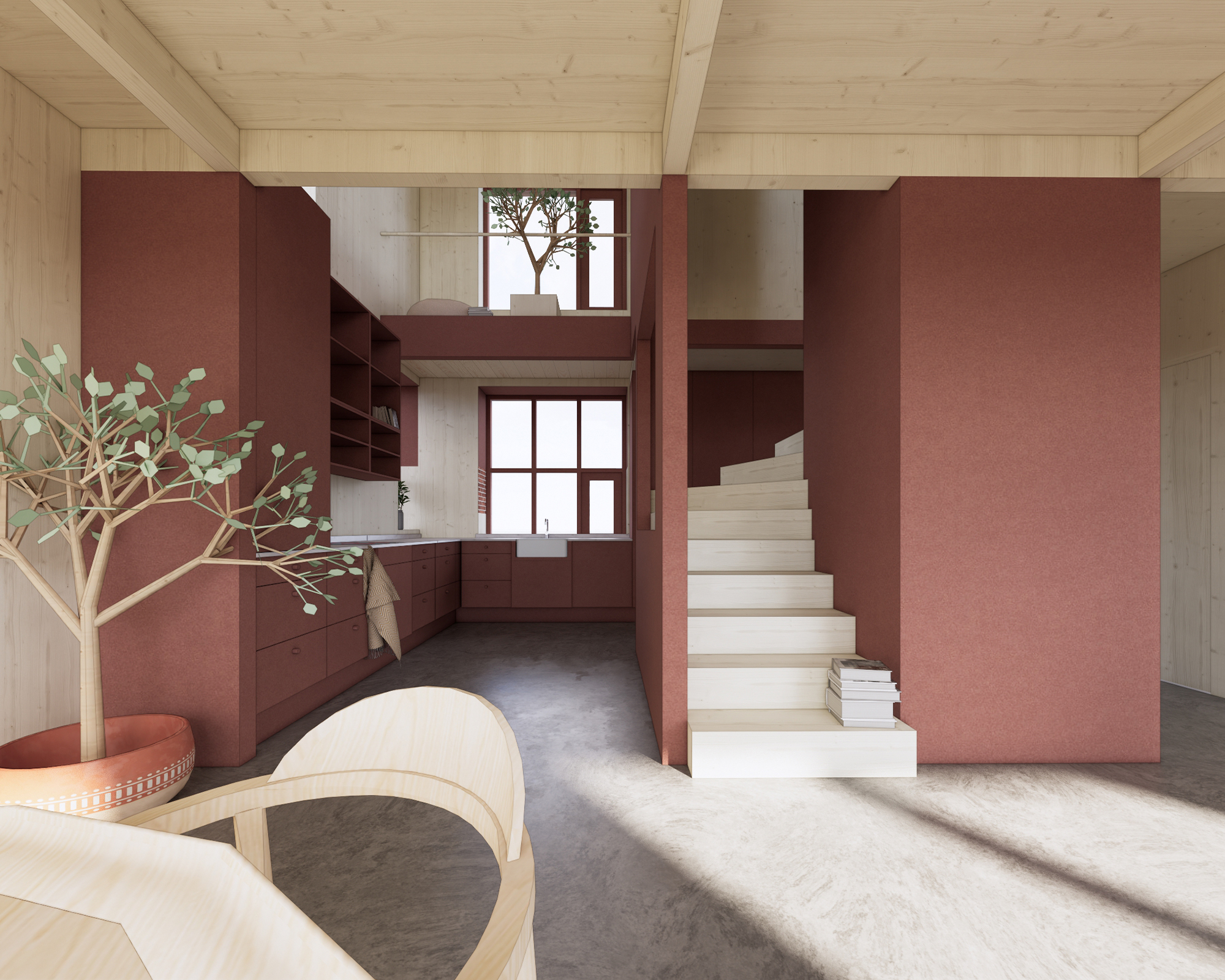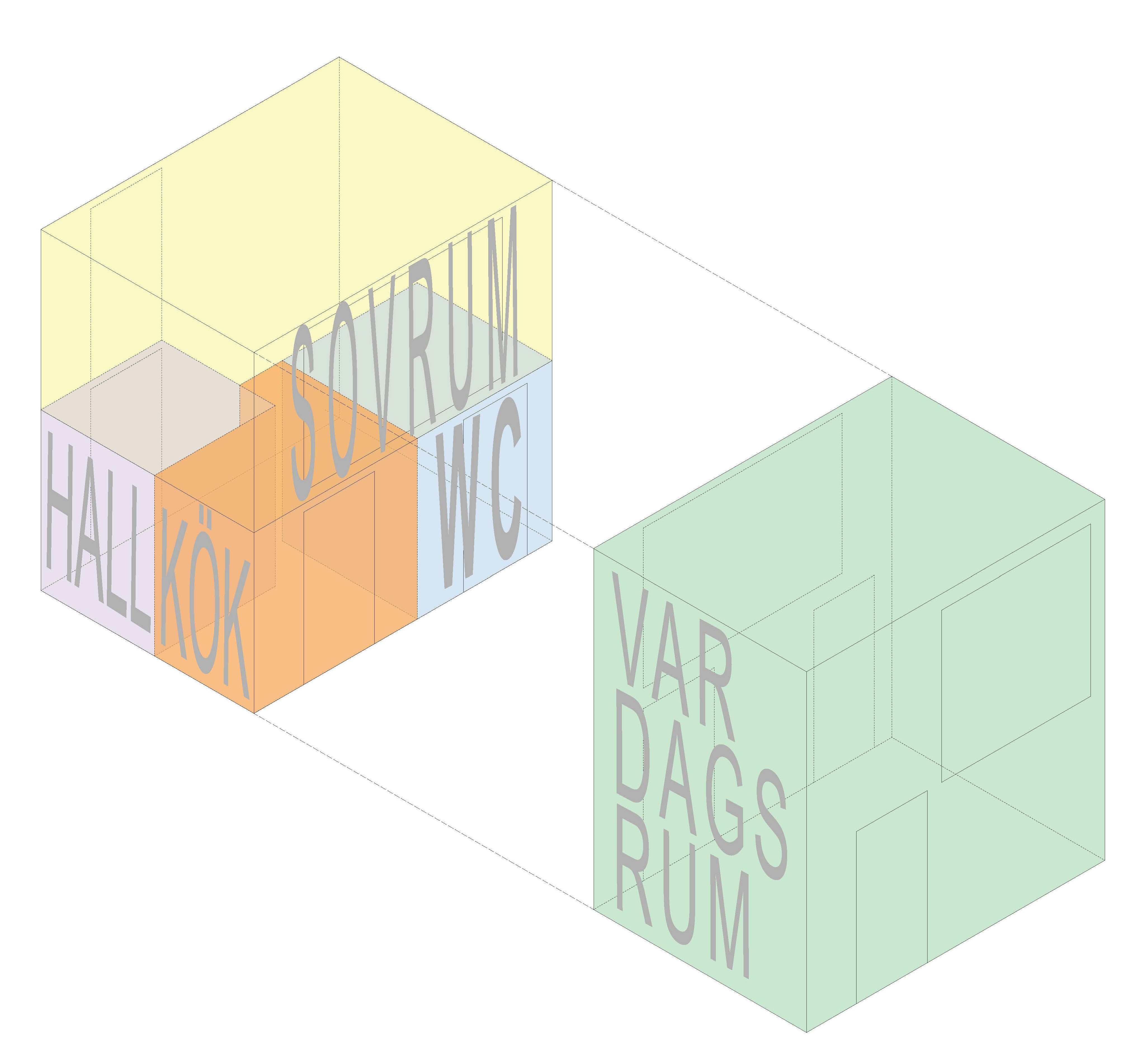I Biljetten bor man i kubik snarare än i kvadrat med mycket funktion på mindre yta fördelad på tre våningar + takstudio. Dubbel rumshöjd gör det möjligt att förena rum mellan våningarna. Planlösningarna är flexibla och gör flera indelningar möjliga för att passa olika familjekonstellationer.
