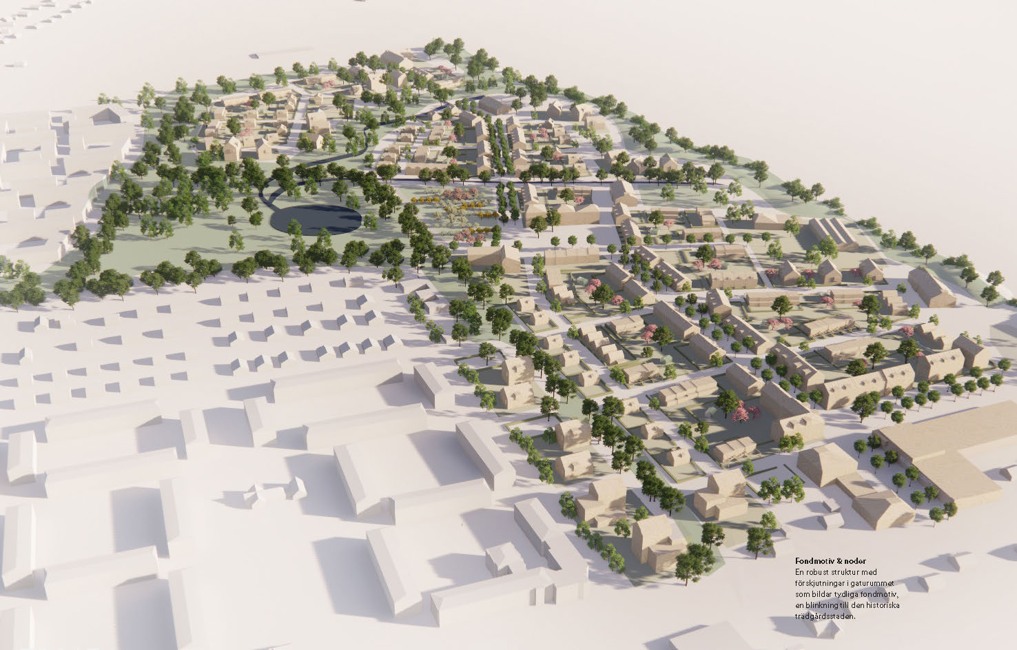 en hållbar och blandad stadsdel med trädgårdsstadens kvalitéer där det bästa från staden och land möts. Hela utvecklings-området kommer innehålla 250–350 nya bostäder, en ny förskola och en större park.